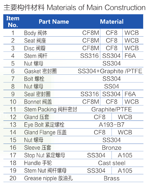 主要材質:CF8,CF8M,WCB(不銹鋼304,316,316L,碳鋼)