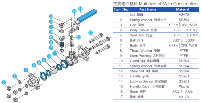 主要材質:CF8,CF8M,WCB(不銹鋼304,316,316L,碳鋼)